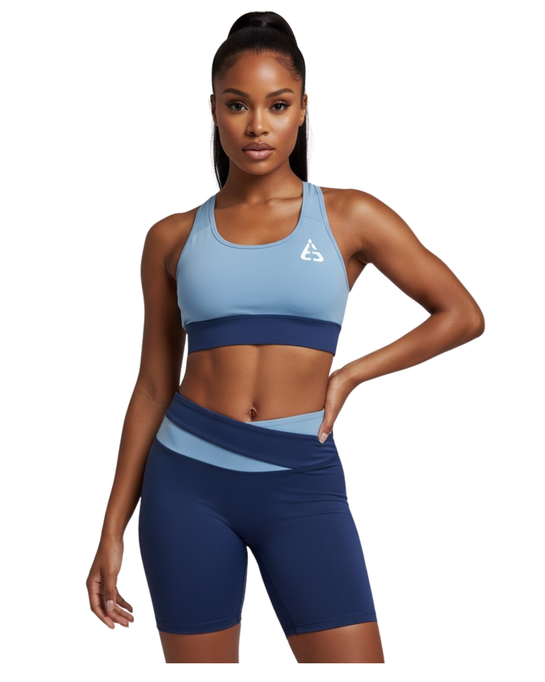 sleek sports bra and shorts set designed to deliver support, comfort, and a flattering fit for active women.